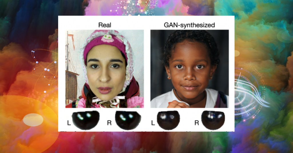 All four individuals pictured here are computer generated using StyleGAN2, software created by Nvidia research labs. What is perhaps most concerning about this is that highly influential figures can be deepfaked, along with realistic sounding voices. Given the expanding reach of the metaverse, it is not difficult to imagine that we will soon be at virtual parties with digital people. In that setting, distinguishing who exists in the physical world and who does not will be challenging. A research group from the University of Buffalo suggested that one way to tell the difference between real and fake, would be to focus on the person’s eyes. Physics dictates that reflections of light in both eyes tend to be similar. GANs, good as they are at discerning patterns, cannot appreciate such idiosyncrasies of our reality. With this technique, the researchers were able to discern 94% of fake images. Whether this becomes a silver bullet against deepfakes remains to be seen, however. If deepfakers keep finding ways to improve, our last hope may be old fashioned technologies – trust and common sense.