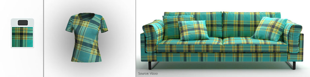 When reviewing the fabric range, it is sometimes difficult to envision the fabric or print on the final product. With digital fabrics, the material supplier can instantaneously show their jersey fabric on a shirt, their print on a sofa, or their suede on a shoe. This creates a more life-like preview and helps to market and sell the materials. The client will have an easier time to envision right away how a material will look like on a relevant product during their initial selection process.