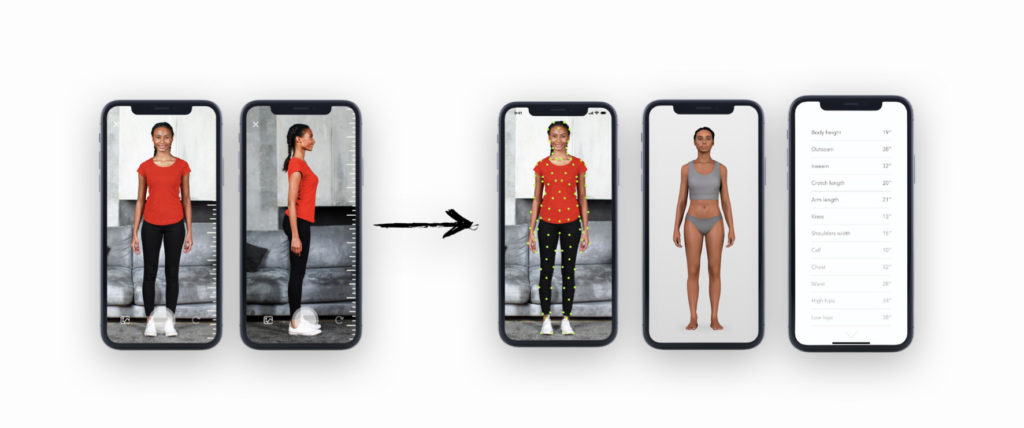 These approaches cover essentially all the bases for dedicated, physical body scanners. But the new wave of size scanning – pioneered by businesses like 3DLOOK and Sizestream – have other tools for collecting body data using either standalone hardware or consumers’ smartphones, together with A.I. & M.L. algorithms. At the time of writing, though, there is still a lack of adoption from brands and retailers of either at-home or in-store. This is surprising because both methods offer a clear benefit – accurate insight into real sizing across a retailer’s customer base – with a minimal or non-existent physical footprint.