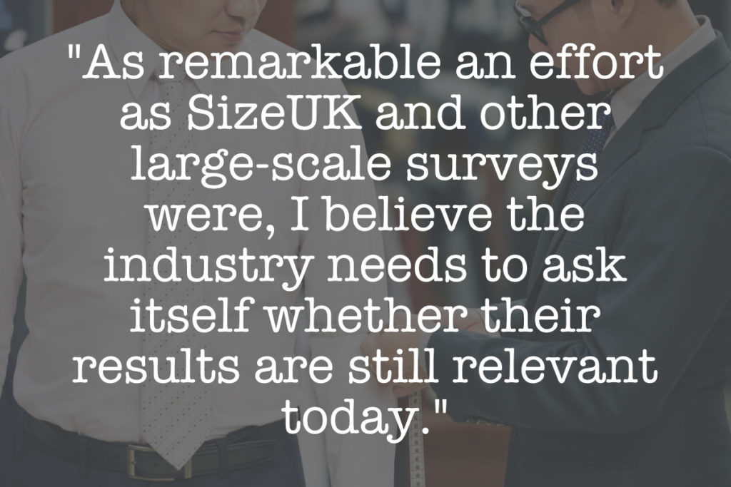 So, as remarkable an effort as SizeUK and other large-scale surveys were, I believe the industry needs to ask itself whether their results are still relevant today. And, by extension, should we, as an industry, be thinking about undertaking new surveys on that sort of scale – and if we did, what new avenues would we have for collecting that kind of data?