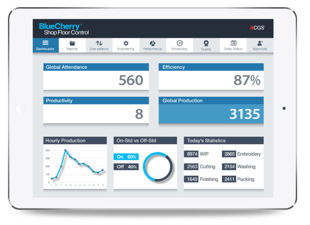 SFC is part of the smart factory, integrated with digital sewing systems and other connected manufacturing equipment. For example, CGS has partnered with sewing machine supplier Juki to integrate BlueCherry® Shop Floor Control technology with Juki smart sewing workstations.