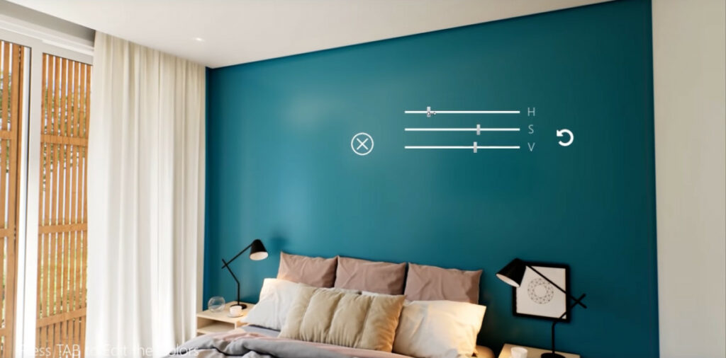 The second metric by which this video should be judged is its interactivity. Unlike traditional 3D CAD fly-throughs – which are how architecture and interior design was traditionally visualised – and offline (static) renders, several sets of materials in the scene the environment artist has (dviz) has created can have their properties manipulated in real-time. In this case that capability is demonstrated by the user changing the colours of sofas and kitchen units to their exact specifications, but the same principles apply to the substitution of one floor tile for another, or the swapping out of furniture.