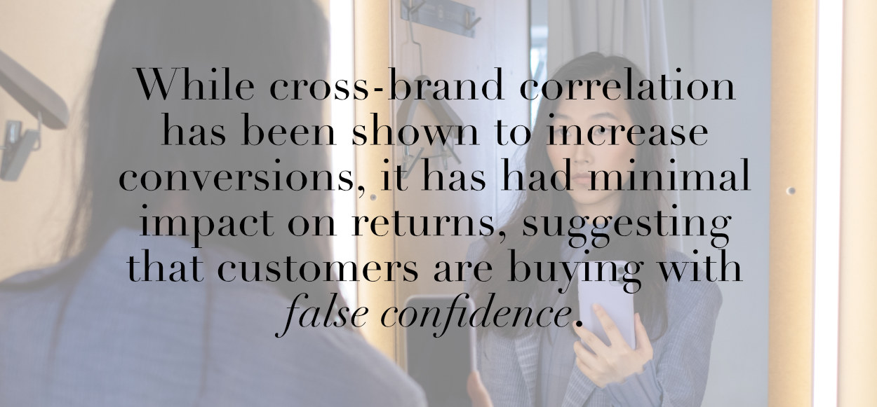 Indeed, the limitations of this approach are already being demonstrated. While cross-brand correlation has been shown to increase conversions, it has had minimal impact on returns, suggesting that customers are buying with false confidence that the recommendations they are being provided are generated at the product level, rather than being averaged out by inference from one brand to the next.