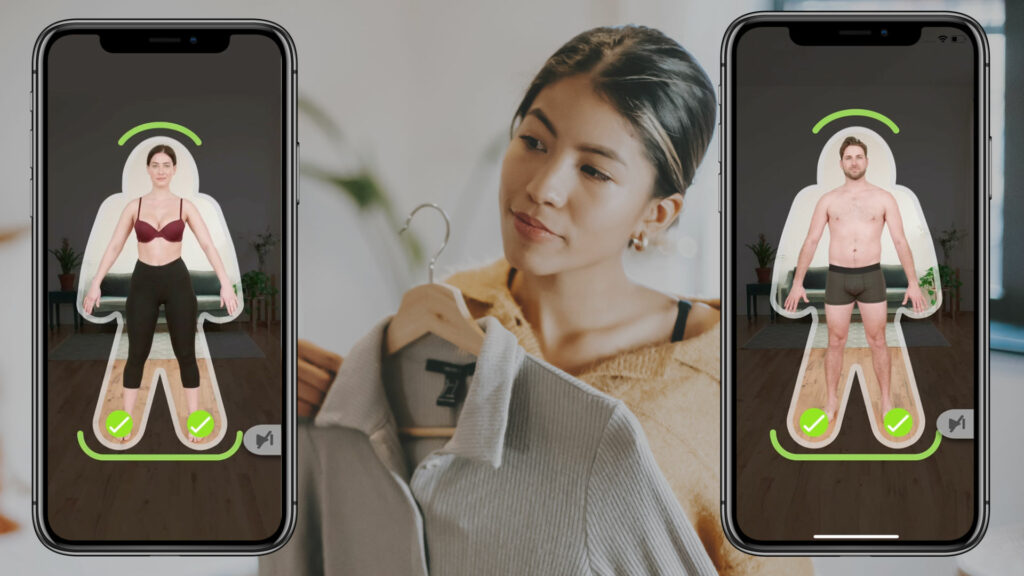 The search for a solution that blends the accuracy of dedicated scanning hardware with universal accessibility, privacy, and usability has driven the explosion of body scanning at home, which many brands and retailers have deployed during COVID (as well as ahead of the pandemic.  From the shopper’s end, this is typically accomplished using hardware they already have – a smartphone – to take several photographs, front and profile, which are then synthesised into a 3D model of the customer using machine learning.