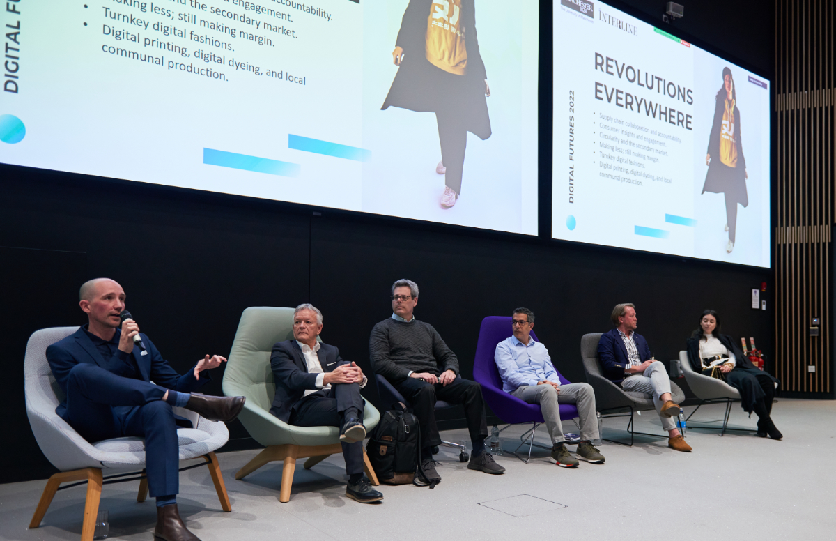 As the audience filed in, I remarked on just how many “leapfrog” technologies were represented on-stage – from rapid, AI-assisted fabric digitisation to 3D collaboration, radical environmental impact measurement, digital thread and yarn dyeing, supply chain transformation, and virtual fashion. Taken in isolation, each of these solutions offers something new to the fashion industry, whether that’s a fresh, unique take on an existing workflow (such as 3D design, simulation, and collaboration) or an entirely new prospect, such as digital dyeing.