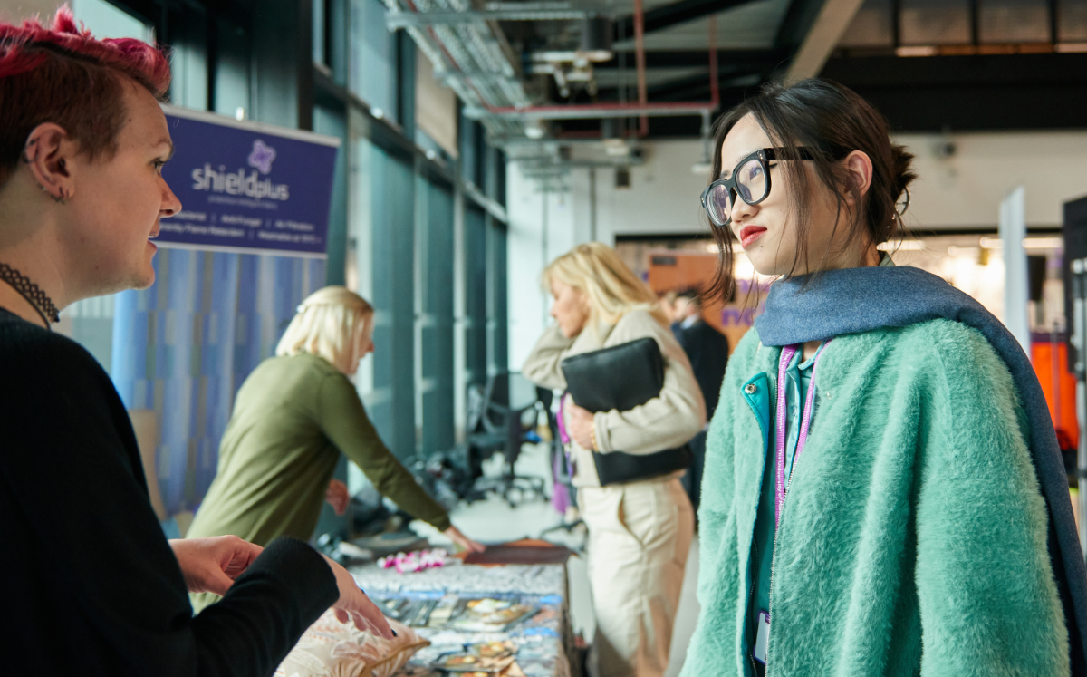 Even with the novelty of gathering in-person put to one side, this was an impressive feat. Technology vendors had travelled in from around the UK, from Europe, from Asia, and from Israel, and further technology companies were represented during the exhibition in person and with pre-recorded video content and demonstrations. Students, alumni, and fashion industry representatives circulated, taking in showcases of virtual store planning, digital dyeing, factory planning and capacity management and labour quantification, 3D design and simulation, material digitisation, sustainability impact measurement and much more.
