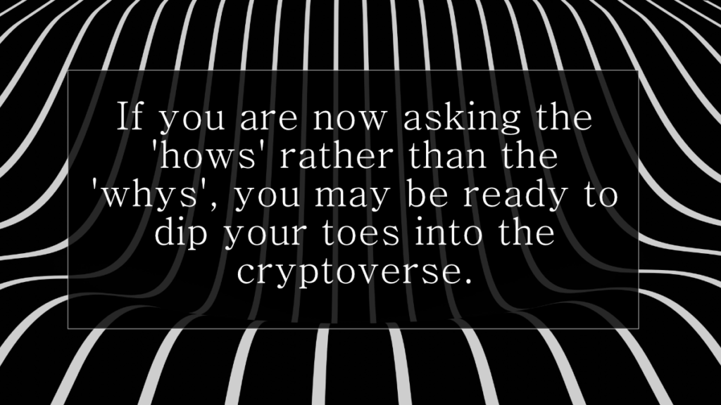 If you are now asking the ‘hows’ rather than the ‘whys’, you may be ready to dip your toes into the cryptoverse.