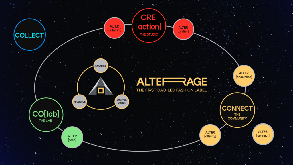 In the beginning you still need some form of hierarchy, as without this people will have a hard time understanding how to take initiative and aligning on the actions they are going to take. In ALTERRAGE we have 4 appointed guides who help facilitate weekly meetings. The contributions from everyone are tracked until our launch and the work is fully on chain (blockchain). You still need leadership and processes, but a DAO allows for flexibility, throwing around ideas, and experimentation. The result is really creative… but it does take longer.
