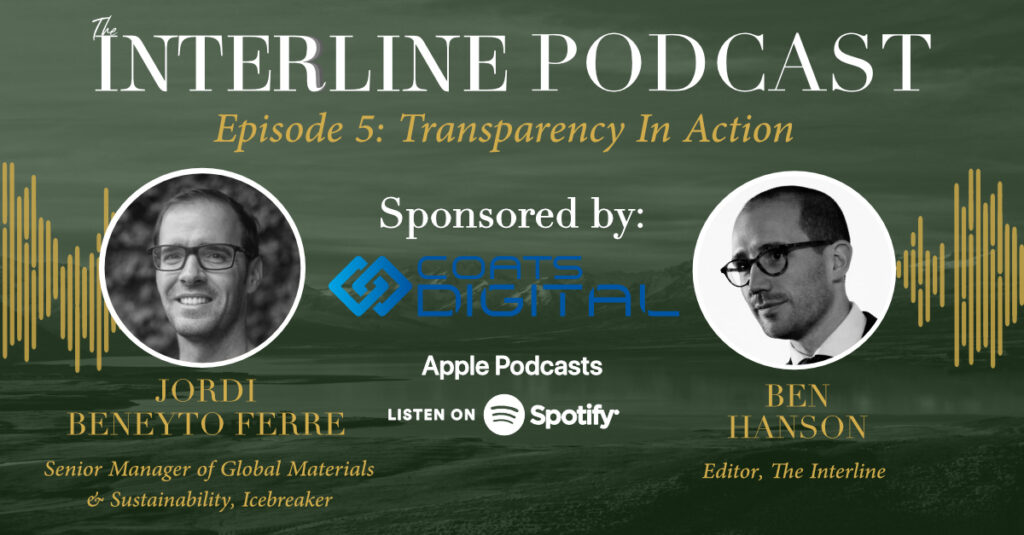 Since our last newsletter, we have also released two episodes of The Interline Podcast – both looking at sustainability and transparency, but from very different angles. The first, featuring the Senior Manager of Global Materials & Sustainability at sustainable clothing company Icebreaker, spotlights the work involved in establishing true supply chain transparency – from raw material to finished product.