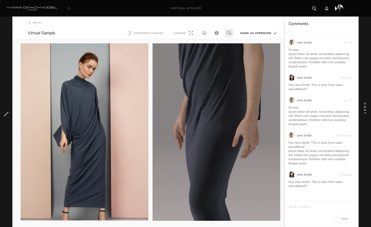 We identified this very early on in our organization in our initial pilot launch of the Avant-Garde Fitting System (AFS) VTO in 2018. Our team of Virtual Sample Makers were creating digital replicas of a luxury designer’s collection, who was also very digitally savvy. While working together we found inefficiencies in the process and communication breakdown when it came to file sharing, deadlines, collaboration and receiving final approvals on the digital versions of the products, not to mention the security risk of how the files were being shared. This is what inspired the Virtual Atelier, our 3D digital asset creation and workflow platform.