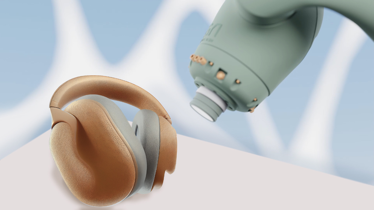 Finally, those 3D moulds and that new material are brought together in digital production, where the biomass material is directly applied by automated robotic hardware, allowing for innovative, seamless styles to be created from novel materials, using a completely new method – both of which circumvent the speed to market, sustainability, and other negative impacts that characterise traditional, analogue production.