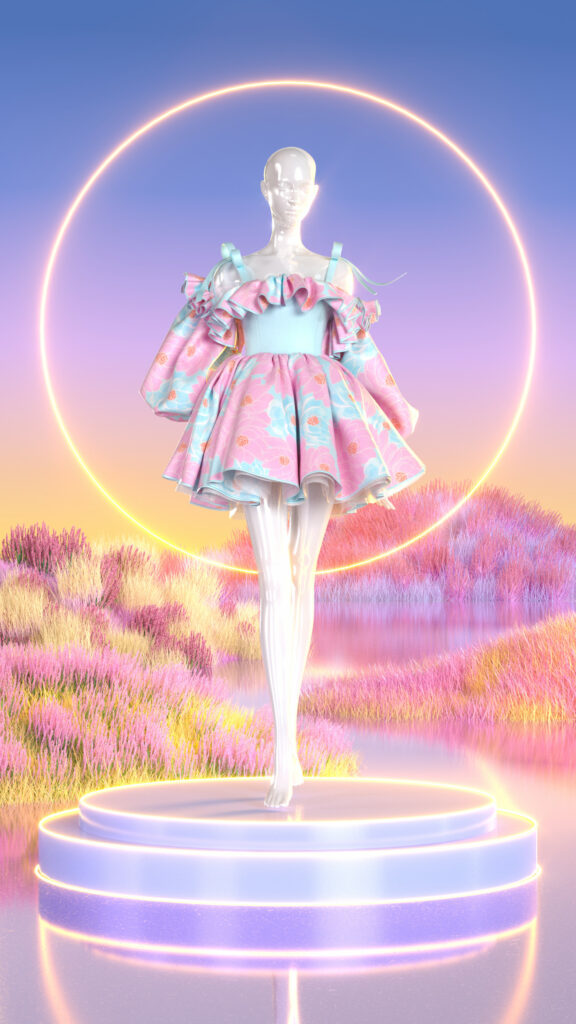For this momentous occasion, PhygitalTwin collaborated with visionary digital designer BlancDeBlanc. Her ‘Breeze of Birth’ debut capsule collection, which gracefully concluded the runway presentation left the audience in awe with its stunning, fresh colour palette. From vibrant lime greens to soothing dusty pinks, each piece embodies the essence of Spring’s rebirth painting a vivid picture of renewal.