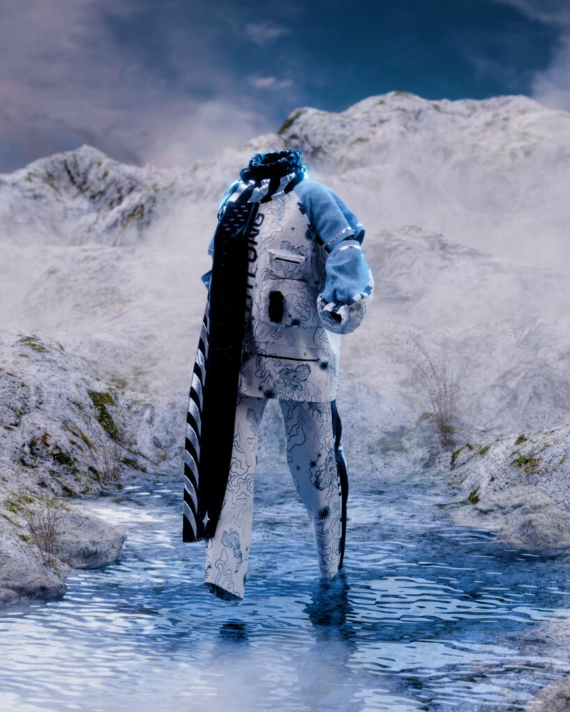 Stephy Fung, the influential British digital artist, combines streetwear and traditional Chinese elements in her designs, inspired by the beauty of winter.