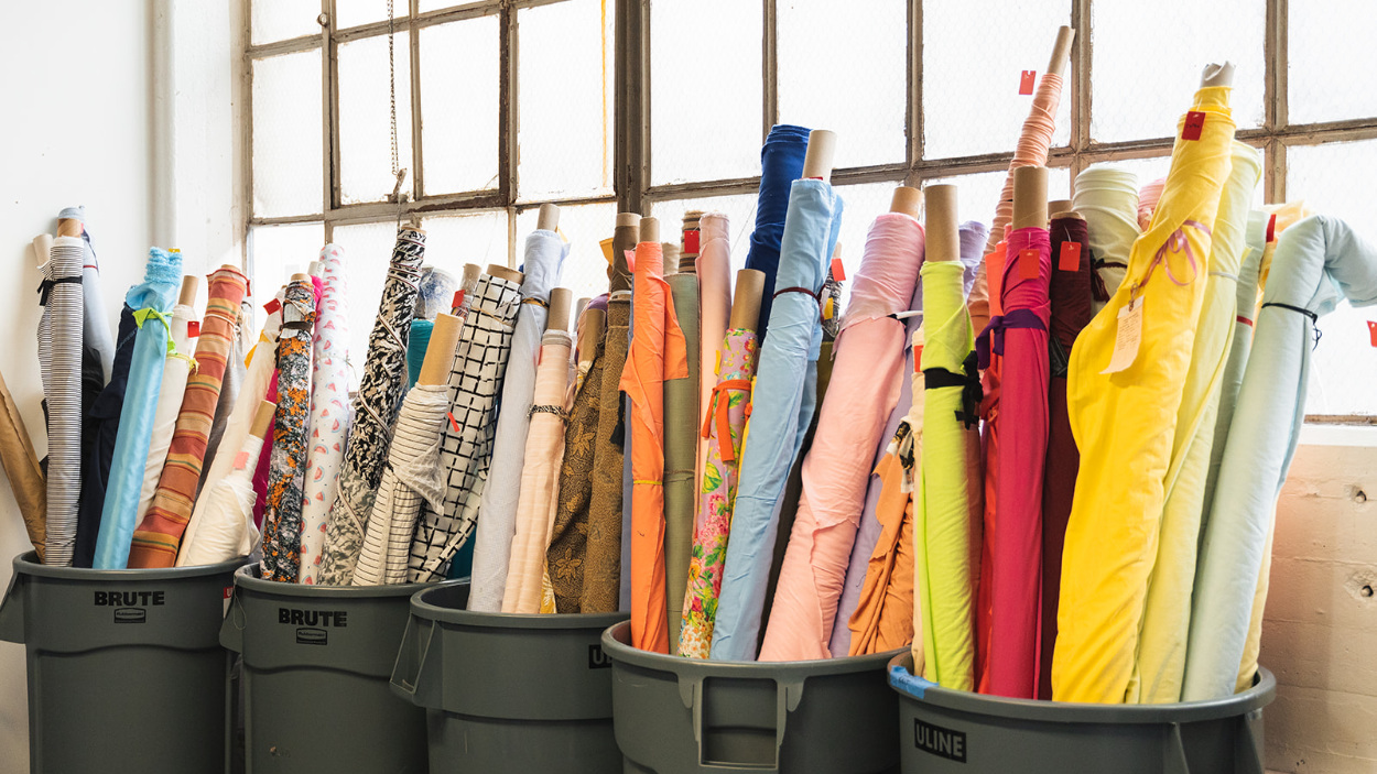 In between finished collections the design office was filled with paper bags, plastic bags, and tote bags bursting with fabric headers and swatches, cuttings, embroidery trials, and even yardage. At first, “clearing out” was a minor detail, just a chore that needed to be crossed off my list. But season after season, I started to pay more attention. I noticed how quickly the volumes of material accumulated, precariously stacked and ready to spill out at any moment. I noticed the carelessness in which the fabrics were added to those piles despite weeks of emailing vendors to create them. I also noticed that most of it was still in pristine condition. All these fabrics were classic examples of pre-consumer textile waste, different from post-consumer, or residential textile waste like used clothing, bedding, or linens.