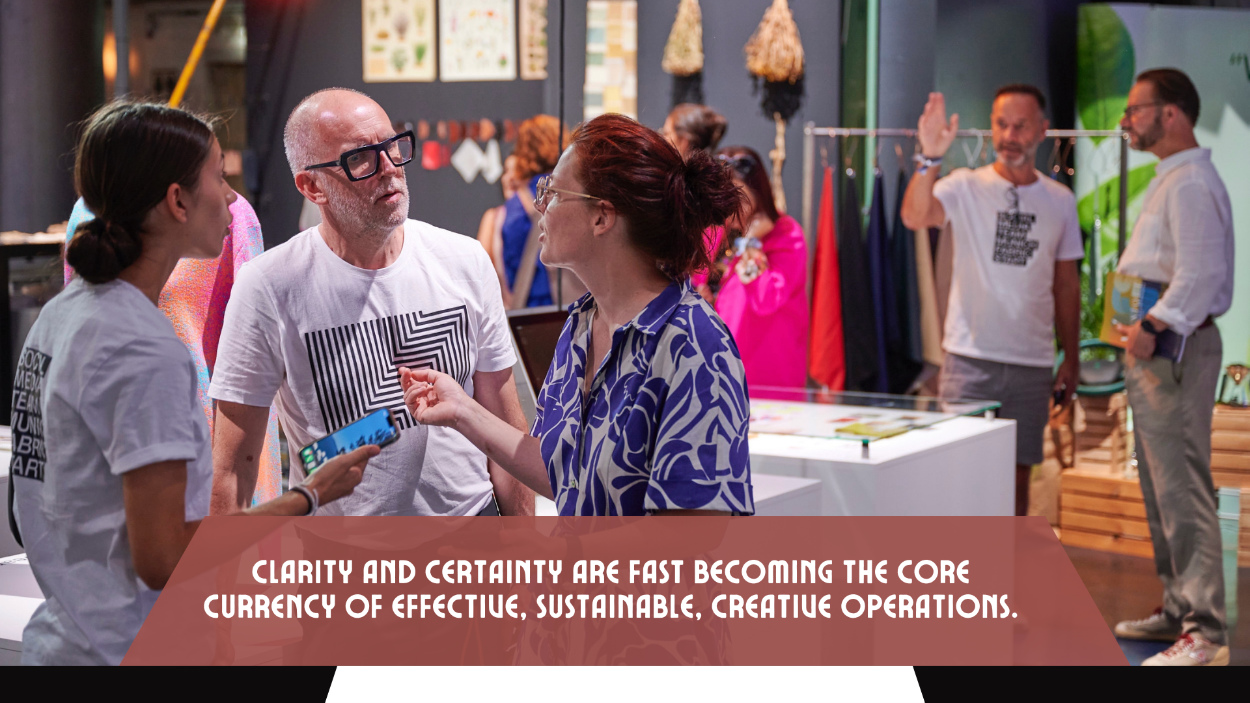 Across all of these areas (and others) clarity and certainty are fast becoming the core currency of effective, sustainable, creative operations. From disclosing the extended journey that a product takes to market, to enabling designers, technical developers, sourcing managers, and other fashion professionals to make informed decisions, clarity (enabled by transparency) is a key foundation for the future.