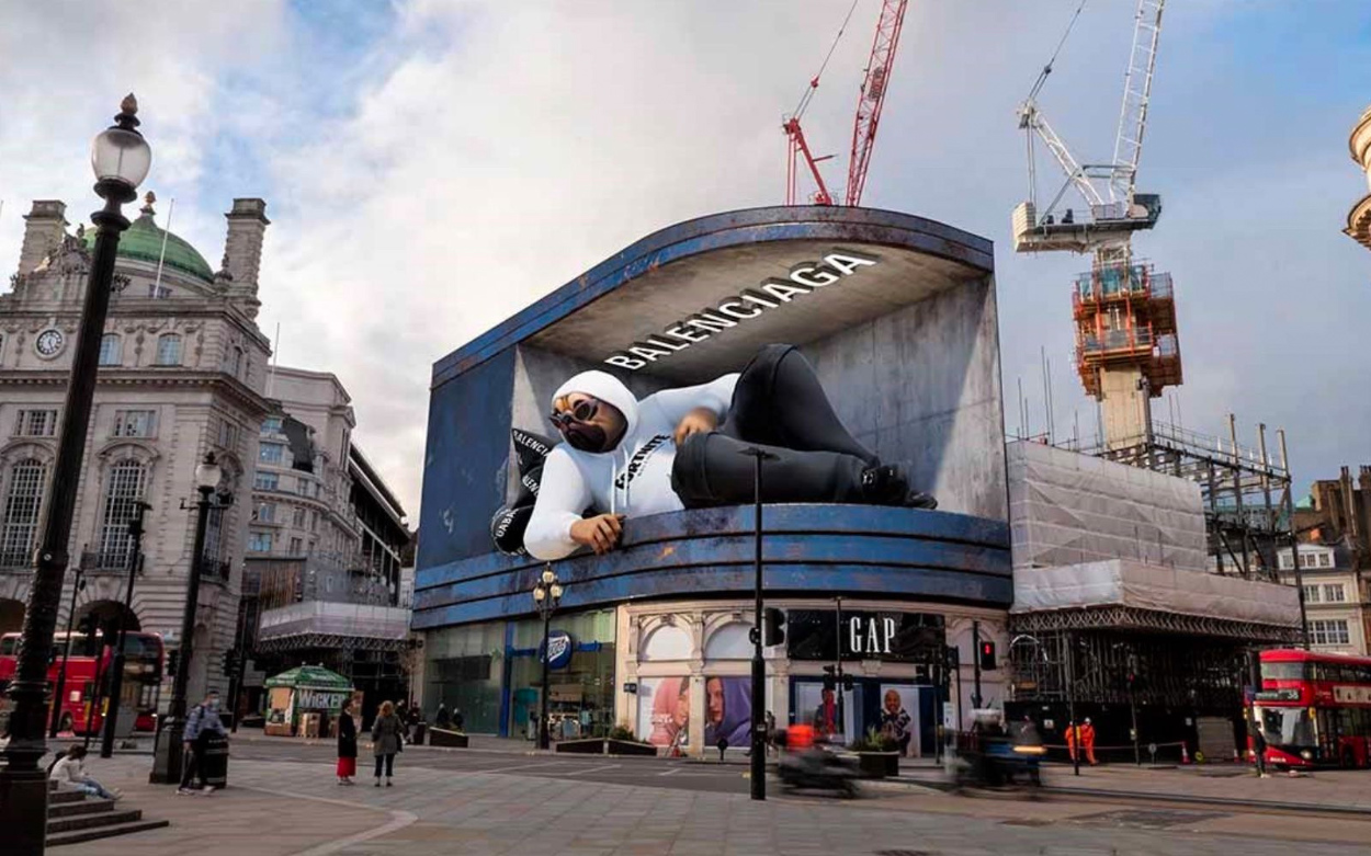 A year later, Balenciaga partnered with Epic Games’ Fortnite, one of the most popular game franchises out there, to launch a capsule collection that bridged the gap between physical (items like hoodies, t-shirts and hats were available for purchase) and digital (Balenciaga skins, emotes and accessories were available for purchase in-game). This launch was nicely capped with an incredible OoH (out-of-home) activation – a 3D anamorphic billboard that captivated crowds in London, New York, Tokyo and Seoul.