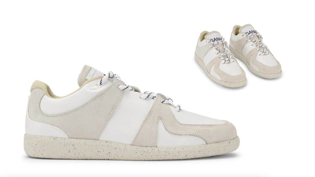 As an example of where and why this matters: Danish brand Ganni has used Vegea for a number of footwear styles. Its Vegea sneaker is described as 70% Vegea, 30% calf leather, and Vegea, in turn, is described as “an innovative material characterised by the high content of vegetal, renewable and recycled raw materials: grape leftovers from winemaking, vegetal oils and natural fibres from agriculture.” The listing does not mention plastic, and Vegea does not allude to any plastic content on its own website, so a consumer would have to do their own independent research to discover that detail.