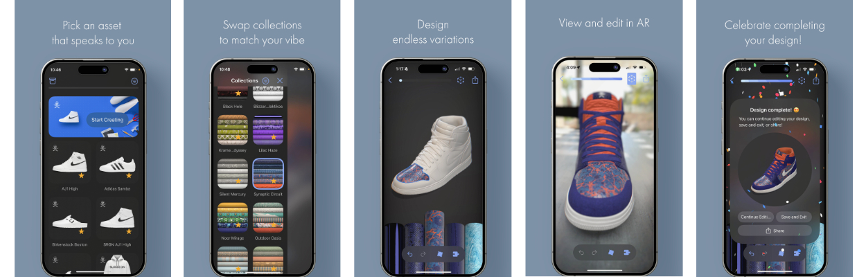The idea of remix is simple: take a 3-dimensional design and collections of digital materials – and apply them to the individual parts of the design with a simple tap. Any combination of materials goes – and your design comes to life in realtime – right in front of your eyes. You can spin it around and view your design from all angles, zoom into the details, or look at your creation as a whole. You can also place your design into the real world using the integrated AR feature which will then capture the lighting from your environment you place it in. Even better, you can continue to design in AR. Remixers can also save their design, and share them with anyone directly or through their favorite social media app. Again – this is on any Apple device, anywhere, anytime.