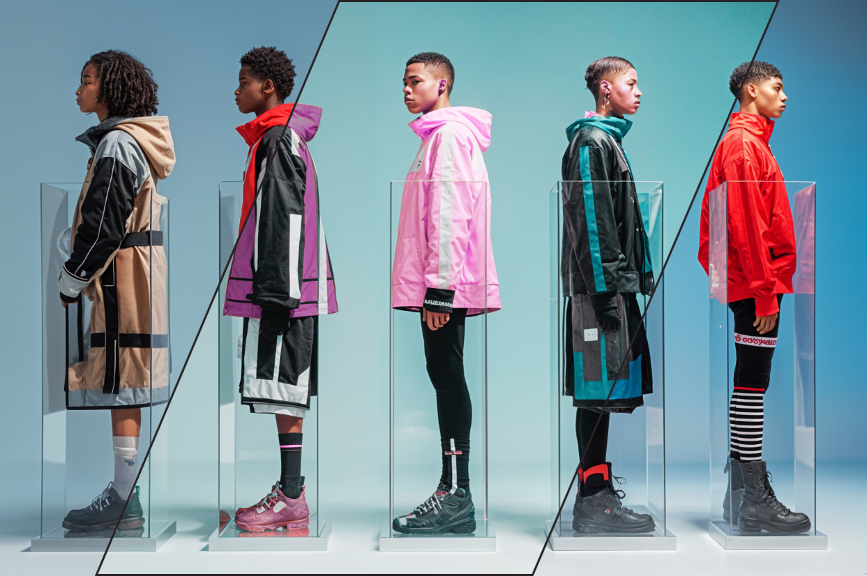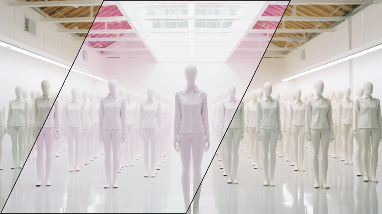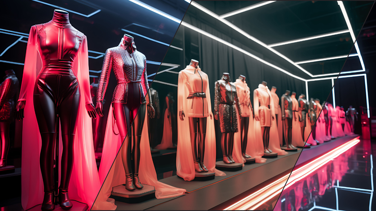 | How to customise: – Sales associate – Tablet – Interactive screen – AR mirror | How to customise: – Ghost mannequin – Different avatars to try on – Virtual try on |