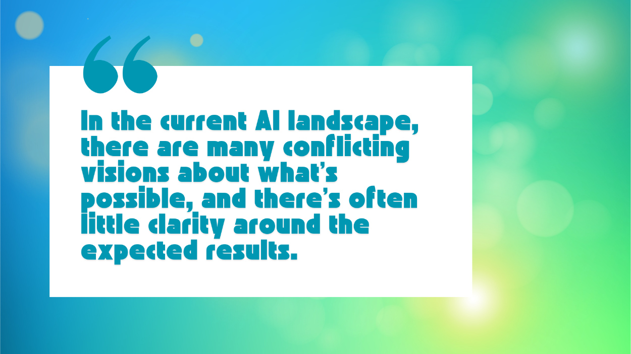 In the current AI landscape, there are many conflicting visions about what’s possible, and there’s often little clarity around the expected results. Historically, clients would present us with a business problem, and we would find the most appropriate solution, which sometimes involved using machine learning models, and other times, more traditional algorithms.