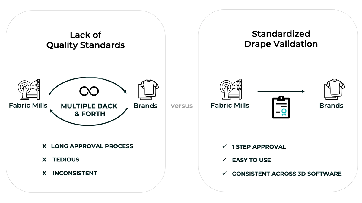 For fashion brands, transforming their supply chains and adopting 3D technologies can equate to requesting digital materials from fabric suppliers. This imposes expectations on suppliers that they know how to create quality digital twins and evaluate the data, while brands are also pressured to take the time and relay their quality expectations clearly to their vendors.