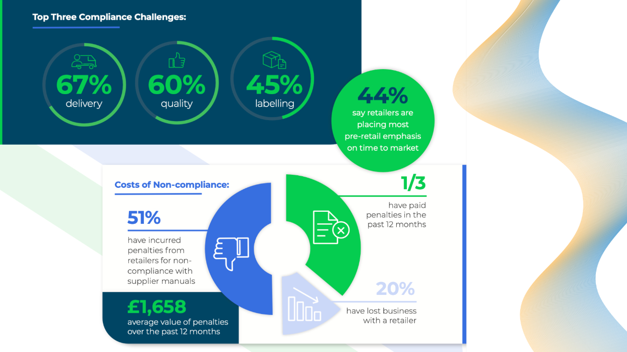 ASC research shows that 50% of clothing manufacturers and brands are failing to meet supplier terms and conditions. Non-compliance with supplier manuals has led to 23% of clothing suppliers losing business with a retailer, with the majority reporting that the value of lost business over the past three years exceeded £75,000. The biggest pre-retail logistics issues are delivery deadlines (67%), quality issues such as damaged products and packaging (60%) and labelling problems (45%).