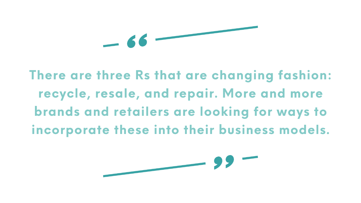 There are three Rs that are changing fashion: recycle, resale, and repair. With this in mind, more and more brands and retailers are looking for ways to incorporate these into their business models. In terms of sustainability, the EU’s ESPR is also relevant here, as the law establishes a direct ban on the destruction of unsold apparel, clothing accessories, and footwear within the EU. Part of this is the Strategy for Sustainable and Circular Textiles, where all textile products must be durable, repairable, and recyclable by 2030.