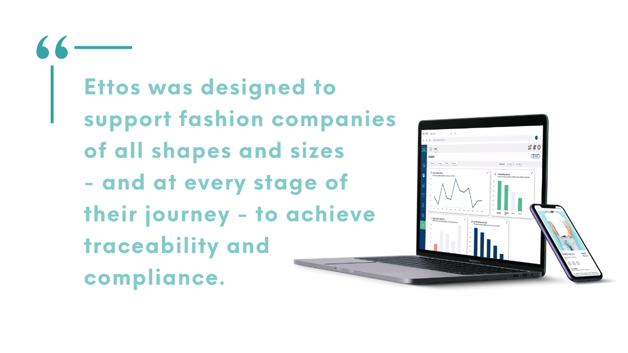Ettos was designed to support fashion companies of all shapes and sizes – and at every stage of their journey – to achieve traceability and compliance. The road ahead for brands and retailers will not be easy, but taking the first steps, or putting one foot in front of the other and not giving up is critical. And having all relevant information and data in one central hub, and working with a partner like ettos that understands the brand, supplier, and manufacturer’s perspectives, could make all the difference.