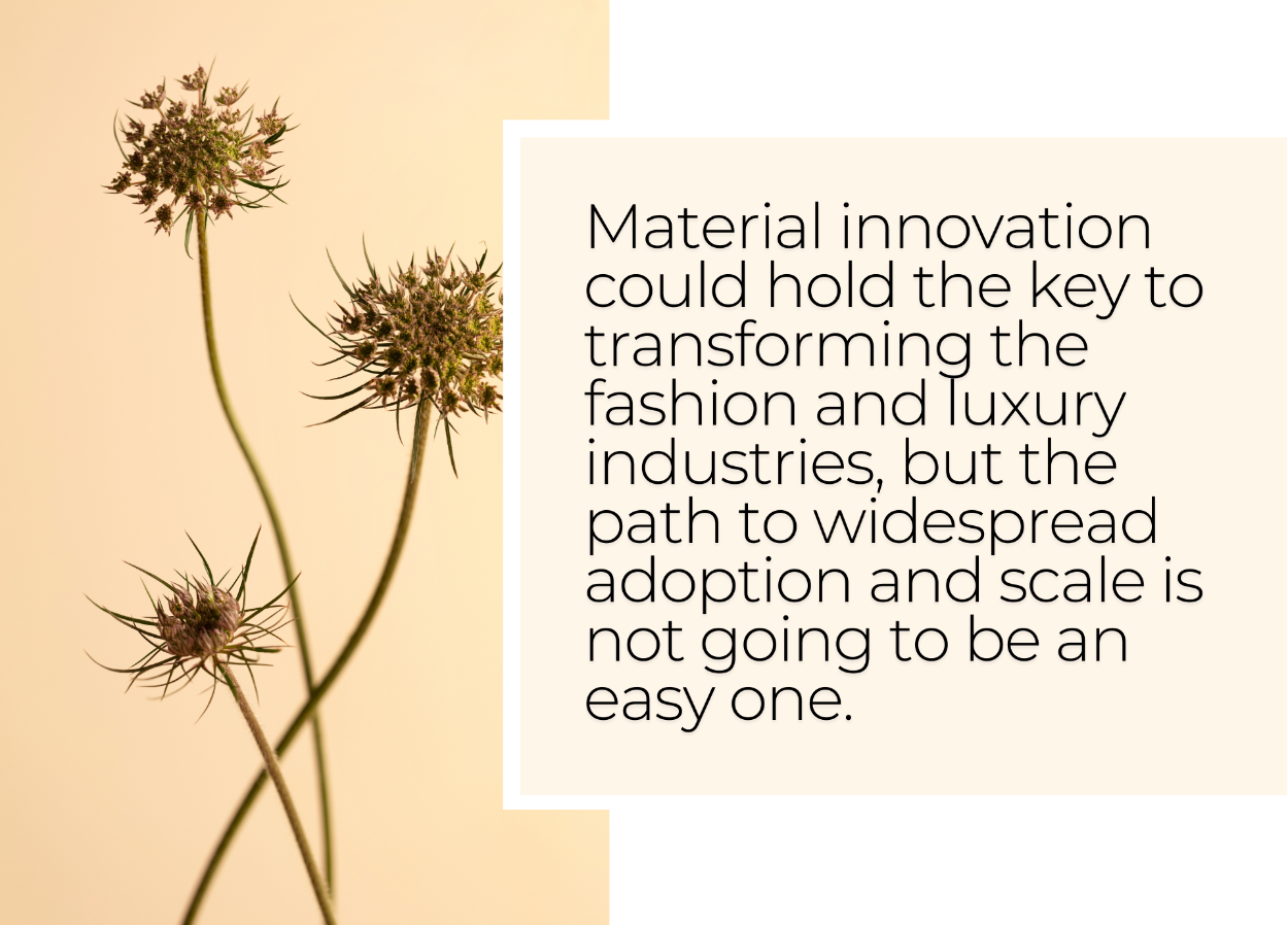Material innovation could hold the key to transforming the fashion and luxury industries, but the path to widespread adoption and scale is not going to be an easy one. From balancing quality and aesthetics to overcoming production hurdles and price misconceptions, both brands and innovators must collaborate closely to ensure these solutions don’t just stay concepts but become integral parts of the market.