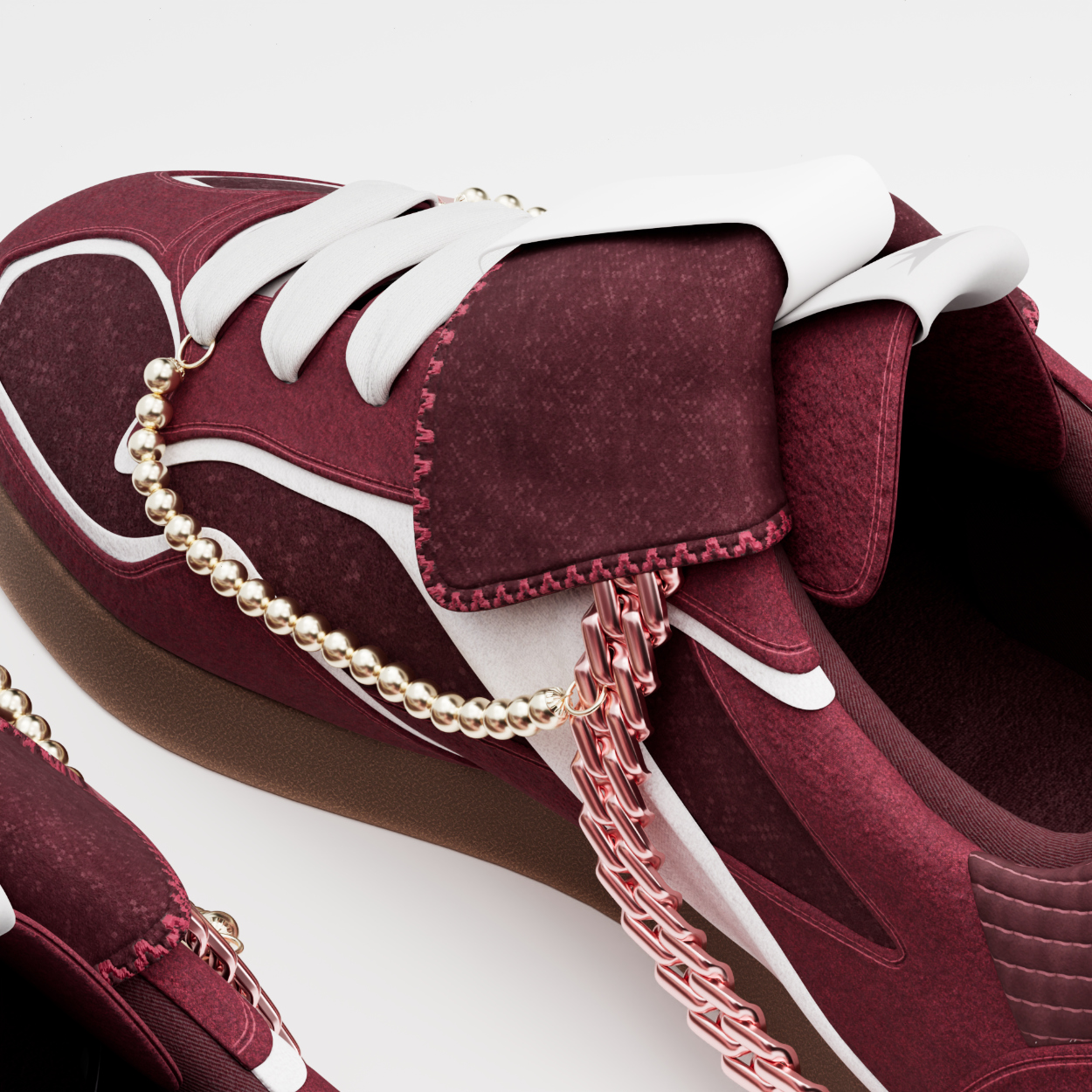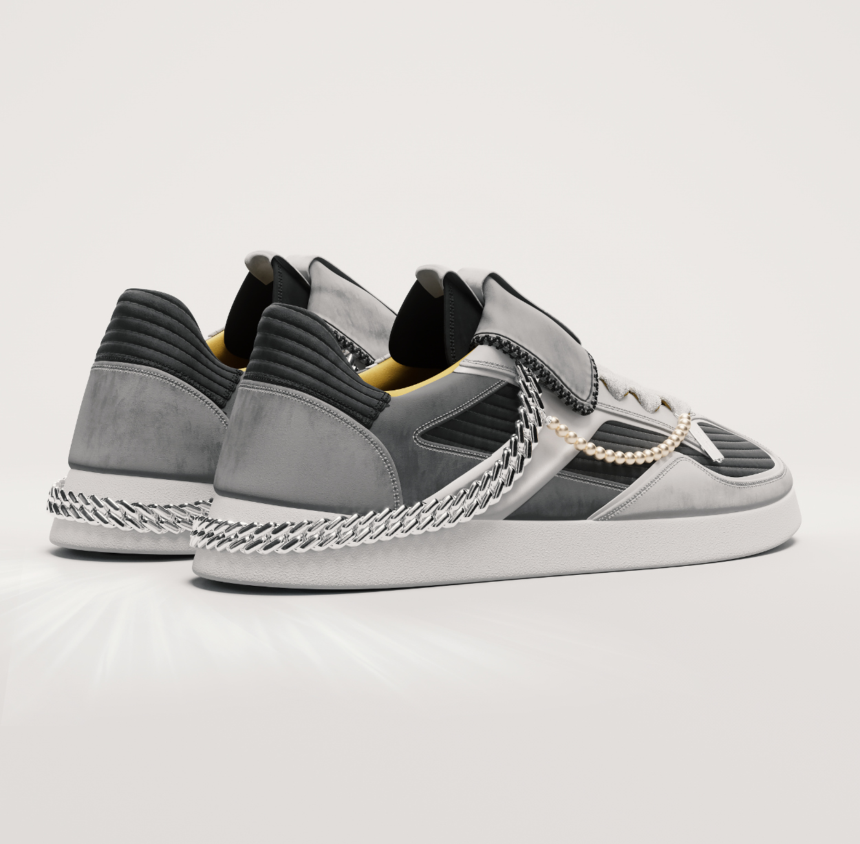 Toolsets are another big difference I’ve seen develop. Most ‘traditional’ footwear designers still use CAD software like Rhinoceros or Solidworks, targeted for a more industrial design use-case, and a lot of 3D Designers like myself will usually work with Polygonal softwares like Cinema4D, Maya and Blender. Computer Aided Design programs focus on accuracy, tolerance and production. Modelling programs like Cinema4D focus on visual quality, animation and usability for digital use-cases. I’ve had the chance to work with a few models that were created in a CAD software, and it usually needs a lot of work for it to look good within the render engine.