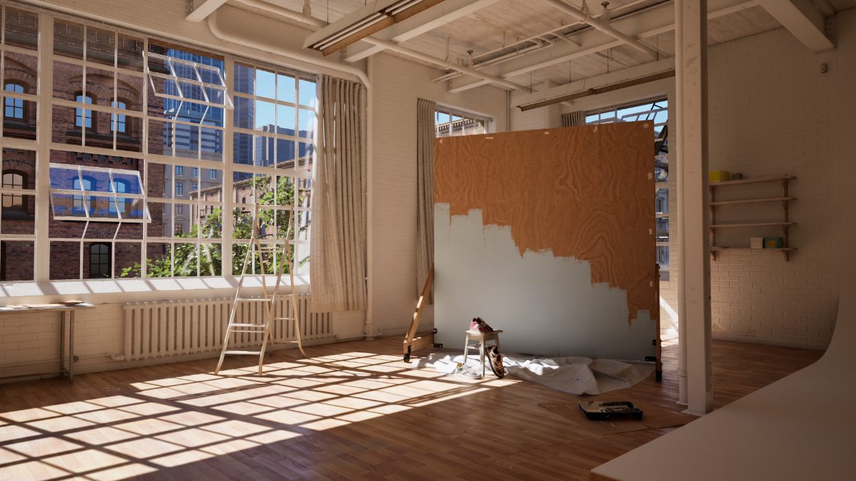 The workshop scene is actually a Twinmotion scene one of my colleagues has been working on and that’s planned to ship as a new Twinmotion template. We decided to use this scene on this project to test its quality and see what can Twinmotion achieve in a more in-context environment. Dropping the shoe variants into that new scene and doing all the shots took me just an hour or so. The ability to navigate in real time in the scene at that level of quality means it’s really quick to position the camera and try many camera angles.