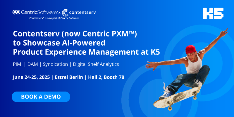 Fabrice Canonge, President of Centric Software says, “We are thrilled to have Contentserv on board and are looking forward to the K5 event to demonstrate the incredible functionality that Centric PXM brings to Centric Software’s AI-powered integrated solutions.”