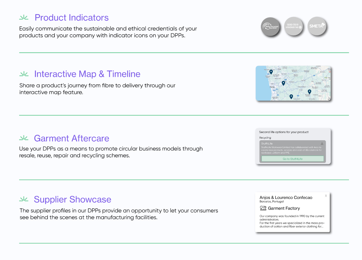 Our leveraged learnings have driven us to create valuable tools for brands to manage the same in a simpler, more efficient way. Coming from a manufacturing background, we understand that carving out sustainability teams and strategies is still very new for many apparel brands. That’s why we’ve designed our software to be easy to navigate and onboard – so whether the responsibility of mapping your supply chain or creating DPPs lies with your product, compliance or tech team, there’s no barrier to adopting our technology.