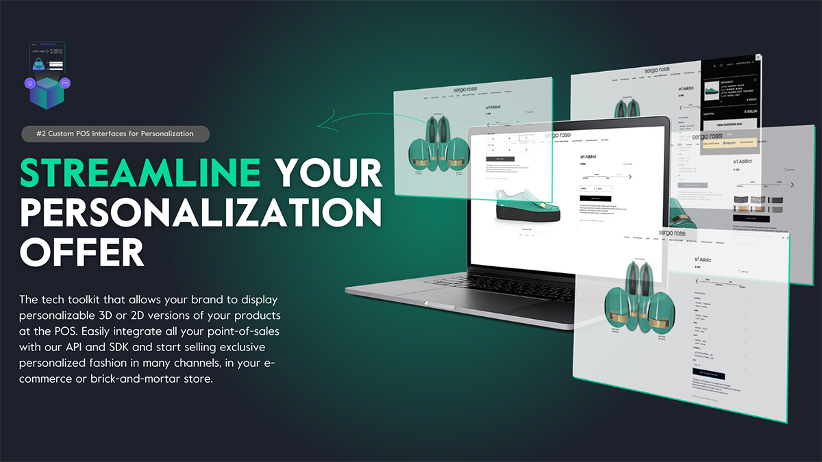 The tech toolkit that allows your brand to display personalizable 3D or 2D digital versions of your products at the POS. Fully customizable to accommodate your brand guideline and e-commerce interface.